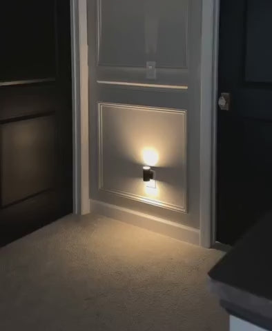 Noah H. June 2025Verified BuyerPerfect hallway glow, no blinding light“I installed the AoraLight in our upstairs hallway so my kids wouldn’t stumble around at night. The built-in dusk-to-dawn sensor works beautifully — it remains off during the day and gently turns on when the hallway becomes darker. The dimmer slider lets me pick a soft glow (we chose about 30% brightness) and it doesn’t interfere with sleep. The plug-in rotates so it fits the horizontal outlet we have near the stairs. Highly satisfied!”