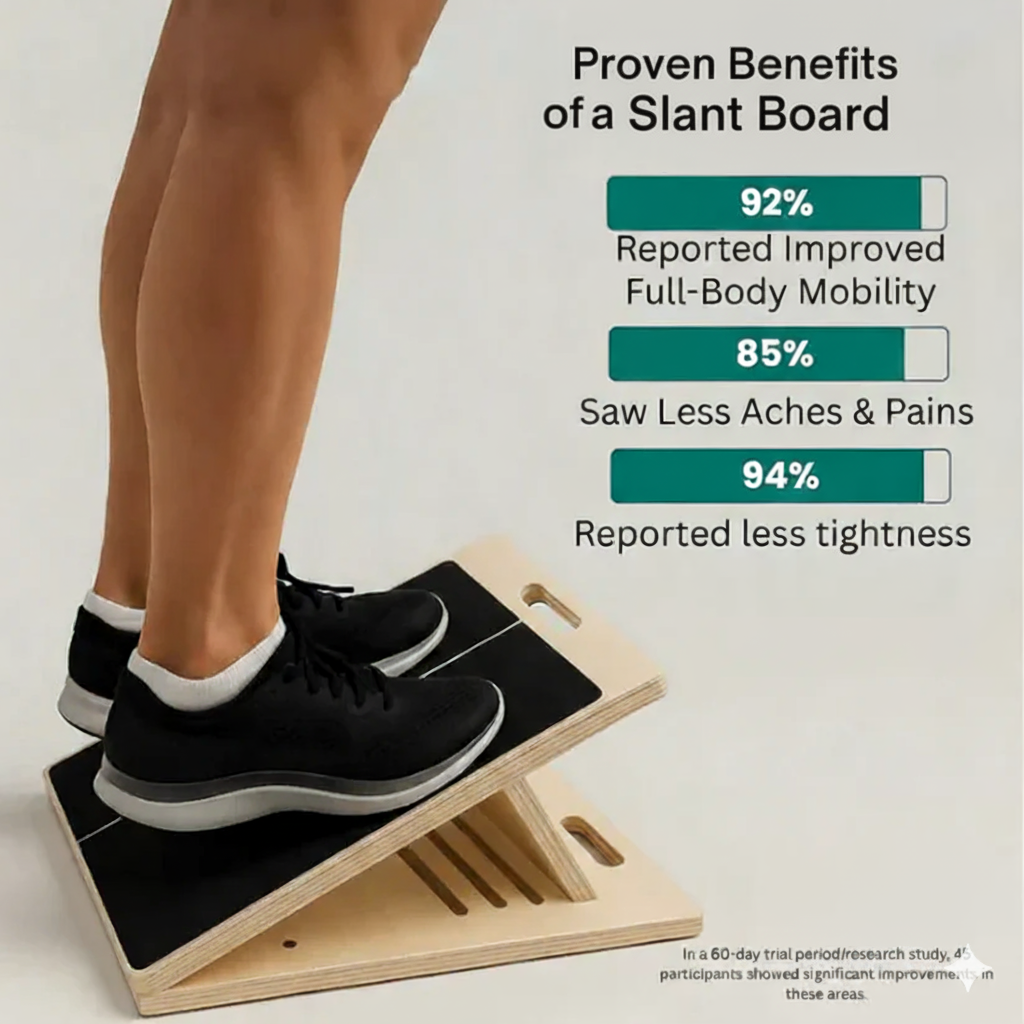 Our Slant Board is ideal for anyone looking to improve flexibility, relieve joint stiffness, and enhance mobility—especially adults over 50, athletes, or those recovering from injury or surgery.